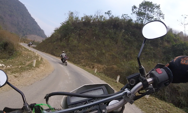 Part 1 was to ride 30km or so to a town near the border called Coc Toc, then pick up the road from there. It almost went to plan. We had a fantastic ride to the first stop in a small town, over - you guessed it - more mountain roads which were as twisty as you like. Only problem was that I'd got a mesh jacket on and it was suddenly quite chilly on this road once we reached a bit of altitude. The cool breeze was getting straight through the mesh as it's supposed to do and I was shivering as a result. I didn't want to have to unload the main bag to get at another layer, so was forced to improvise by stuffing my adventure hat (think Indiana Jones and you're not far off) down my jacket. Worked a treat. It was clear that everyone was really enjoying this road. Much fun was had.